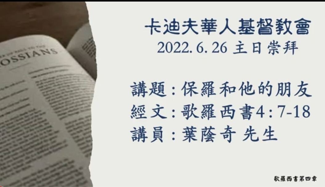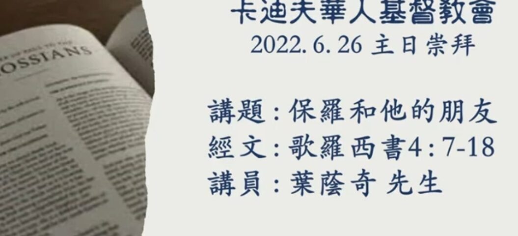 主日講道題目:保羅和他的朋友 (歌羅西書4:7-18)