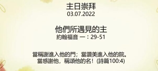 主日講道題目: 他們所 遇見的主 (約翰福音 1:29-51)