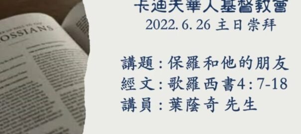主日講道題目:保羅和他的朋友 (歌羅西書4:7-18)